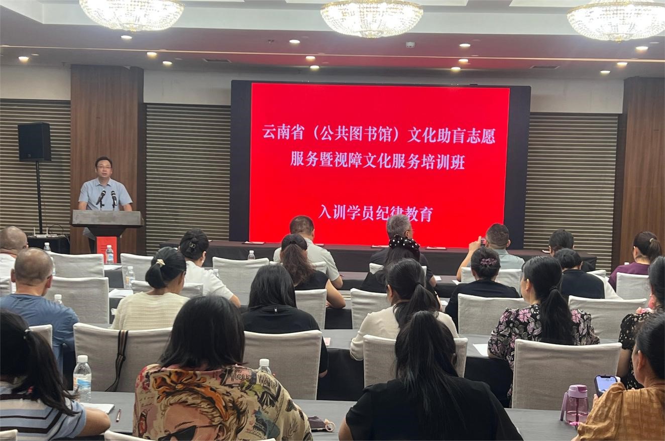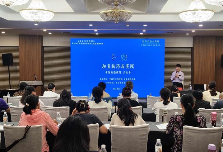 2024年6月11日至14日,由中国盲文图书馆、云南省图书馆联合策划主办,玉溪市图书馆承办的“云南省(公共图书馆)文化助盲志愿服务暨视障文化服务培训班”在玉溪市举行,来自全省16个州(市)、县级公共图书馆的视障服务及文化助盲志愿服务业务骨干参训。