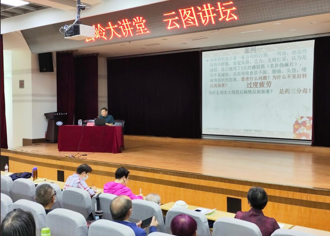 在日常生活中,药物的重要性不言而喻,其正确使用能有效缓解病痛,而误用则可能潜藏风险。2024年6月30日,“云岭大讲堂•云图讲坛”邀请昆明医科大学副教授杨建宇来到云南省图书馆,为公众带来了题为“家庭常备药的合理使用”的公益健康知识讲座。此次讲座,杨教授以药理学为基石,为现场百余名听众提供了极具实用价值的指导,受到听众好评和欢迎。