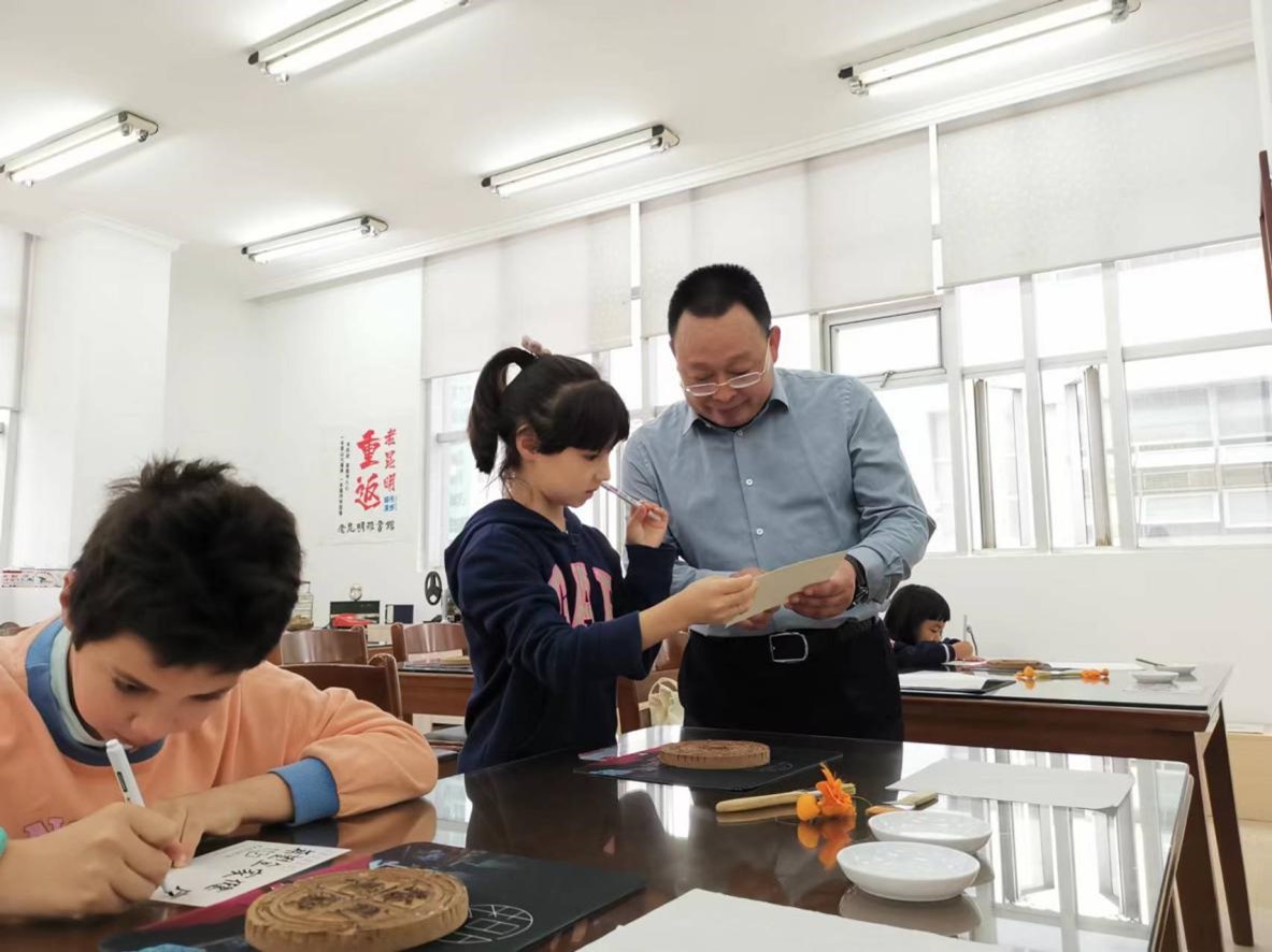 图为杨和祥馆长与小读者共同朗诵《小桔灯》