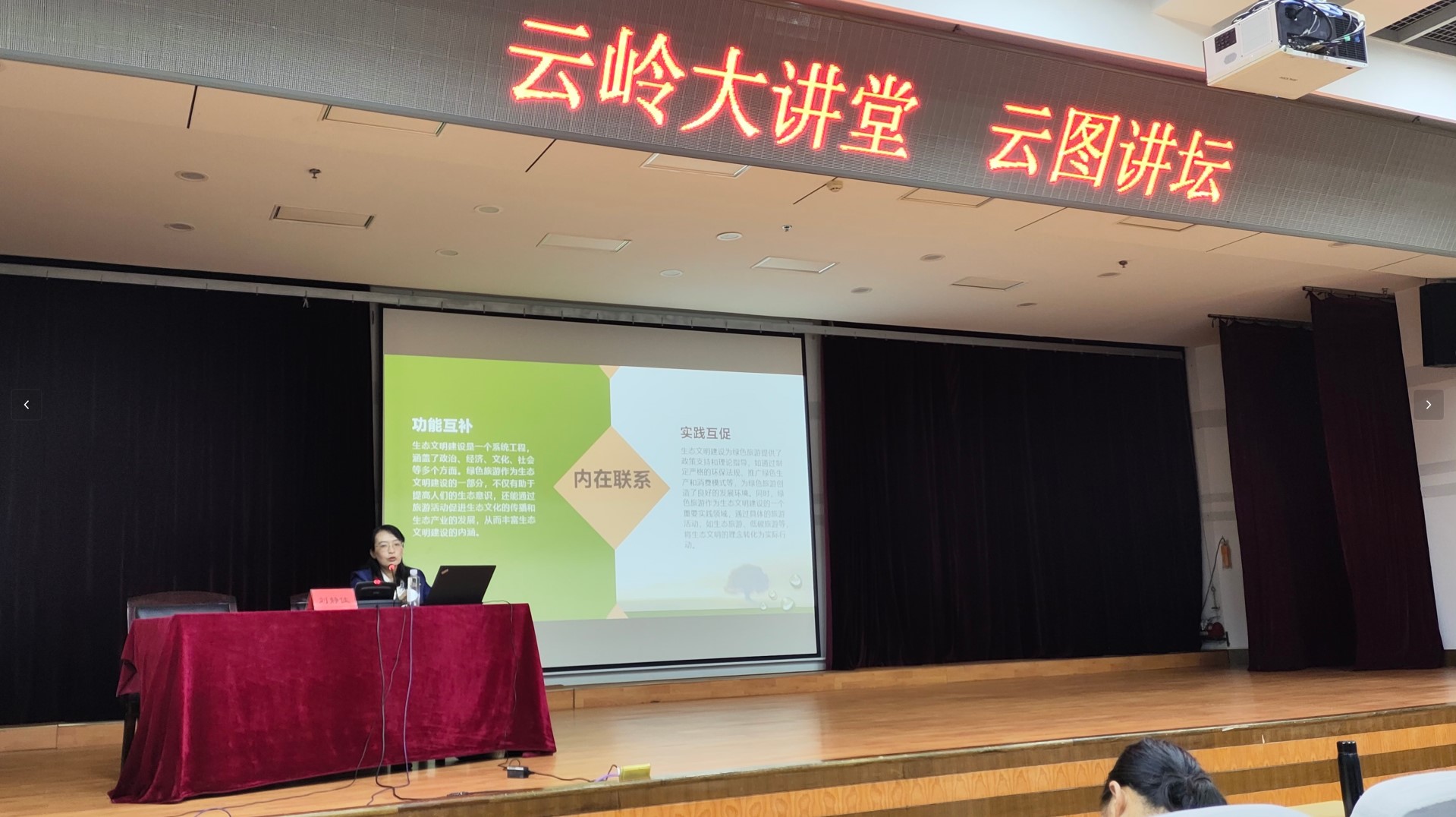 2024年8月11日,“云岭大讲堂·云图讲坛”邀请云南开放大学教授刘静佳,到云南省图书馆为公众举办以“促进生态文明建设,实现绿色旅游可持续发展”为主题的公益讲座,吸引了百余名听众热情参与。