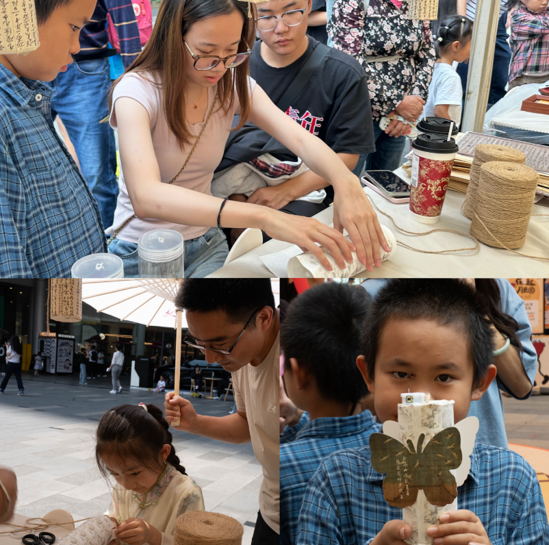 活动现场,广大民众踊跃参与,通过趣味横生的知识问答,深入了解古籍的丰富内涵与深厚底蕴。在互动体验区内,一系列精彩纷呈的活动更是让参与者们流连忘返:古籍线装书制作尤为热门,市民在工作人员的耐心指导下穿针引线,亲手装订出独一无二的仿古线装书,近距离感受古籍装帧的独特魅力与工艺之美;传拓体验区让市民们亲自体验传统拓印技艺的奥妙,一幅幅精美的图案在宣纸上生动再现,让人叹为观止;古籍书签制作让大家在动手制作的过程中,不仅享受了创作的乐趣,更进一步激发了对阅读的兴趣与热爱;古籍元素小夜灯的制作,在点亮中秋之夜的同时也点亮了公众对传统文化的热爱和传承之心;饱含云南省图书馆元素的特色印章更是成为了现场的一大亮点,吸引了众多年轻人排队打卡留念,为活动增添了不少时尚与活力。活动现场人潮涌动、热闹非凡,惠及群众人数达2万余人次,充分展现了昆明市民对传统文化的浓厚兴趣与高度认可。大家在浓浓的中秋氛围里不仅领略了古人的智慧与情怀,也感受到了古籍跨越时空、传承至今的珍贵与不易。