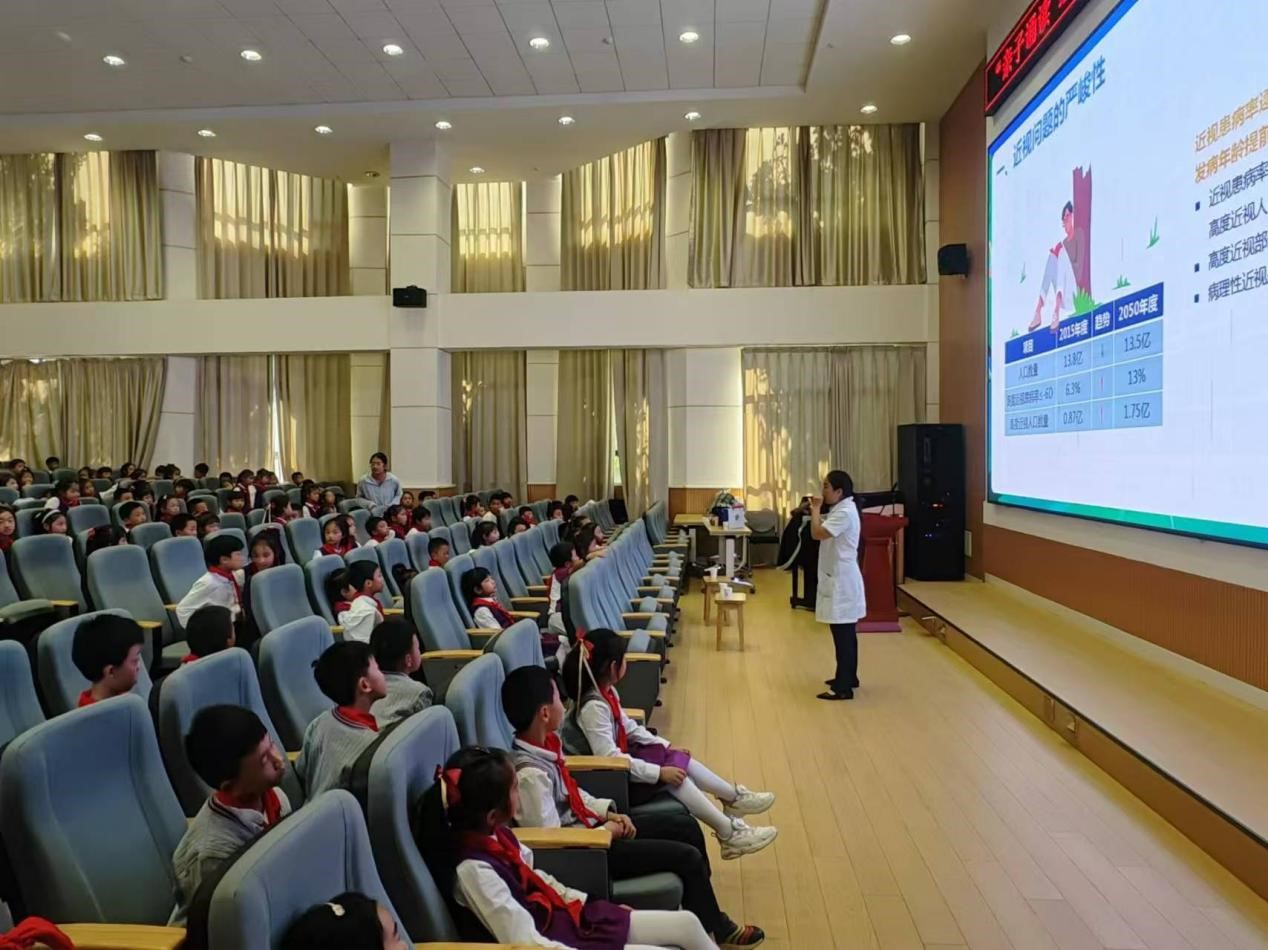 来自爱尔眼科·昆明的眼科医生为学生们带来了一堂生动有趣的用眼护眼知识讲座,她以深入浅出的方式,详细讲解了眼睛的发育过程,让大家对眼睛这个神秘而重要的器官有了更深刻的认识。同时,通过一系列有趣的小故事让大家认识到许多关于近视的误解和谣言,不仅令人捧腹大笑,更让他们在轻松愉快的氛围中掌握了正确的近视知识。医生还分享了近视问题的发生原因和预防矫正措施,让学生们明白预防近视需要从日常生活中的点滴做起,养成良好的用眼习惯。
