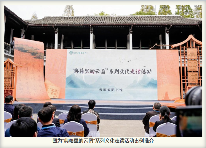 “典籍里的云南”系列文化走读活动以省图书馆馆藏善本《六河图说》《滇南草本》《徐霞客游记》等为引,开展了从古籍观摩到实地行走、从传统村落到旅游景区的研学游和City Walk,使阅读与旅游相互印证,打通人、书、馆、城的内在联系,让读者在学、研、读、游的过程中感悟古籍魅力,沉浸式感受旅游之地所承载的历史文脉。社会反响热烈,深受大众喜爱。