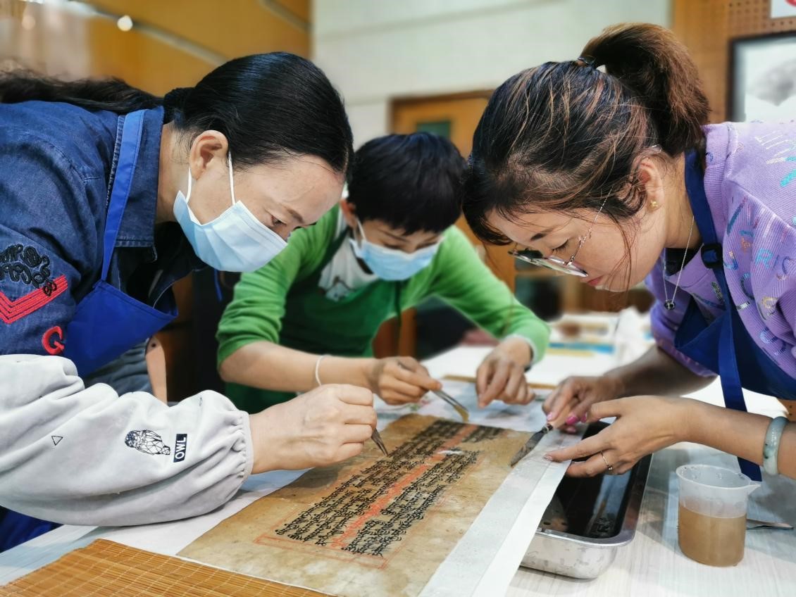 云南省图书馆(云南省古籍保护中心)自2012年起创新性开展古籍保护文化志愿服务活动以来,积极建立健全志愿服务项目长效运行机制。十余年来,按照志愿者招募原则和“奉献、友爱、互助、进步”的志愿服务原则,创新组建集专业人才和大学生志愿者于一体的志愿团队共440余人开展全省古籍保护文化志愿服务工作。截止目前,全省50家单位完成了古籍普查登记工作,普查登记汉文古籍及民国时期文献56868部482230册、藏文古籍2285叶、傣文古籍16000余部23280册(含贝叶经)、彝文古籍127部230册、西文古籍836部,汉文古籍普查完成率达95%以上。通过以干代训方式,抢救性修复汉文古籍1940册108813叶、彝文古籍284册15182叶、藏文古籍2882叶、傣文古籍34册970叶、东巴经古籍40册491叶,修复拓片90幅。在完成古籍普查的同时,云南省图书馆组织志愿者深入校园与社区,展示并教授古籍修复技艺,举办志愿活动,增强古籍保护在公众中的知晓度,营造全社会共同保护古籍的良好氛围。