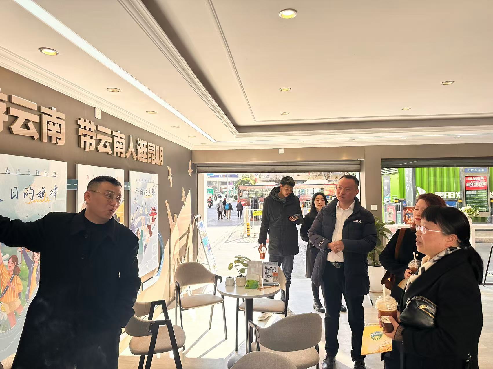 揭牌仪式后,云南省图书馆一行参观了公交公司。在临街公交驿站上,“公交+旅游”服务吸引了大家的注意,王耀斌副经理详细介绍了“公交+旅游”服务模式。现场思维碰撞下,大家对图书分馆建设提出了更有创意的想法,公交公司也将进一步优化完善分馆的服务形式和内容。