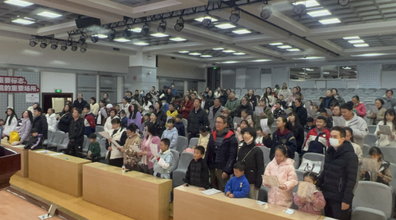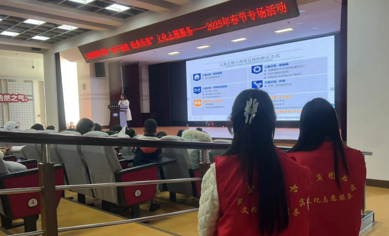 上午10时,活动准时开始,此时已有100余组家庭进场落座。来自昆明爱尔眼科医院的高级验光师熊颖老师首先登台给大家带来了一堂关于爱眼用眼的科普课,分享了不少护眼小知识,使大家深深感受到保护视力的重要性。在随后的诵读环节,经验丰富的刘建威老师用她那配音演员的知识和功力,带着大家调整呼吸、练习发音,还把古诗词里的深意和现代表达方式的差异讲得明明白白。家长和孩子们跟着老师的引导,深情投入地诵读着一首首与春节有关的古诗词和长联,现场气氛既热烈又有序。