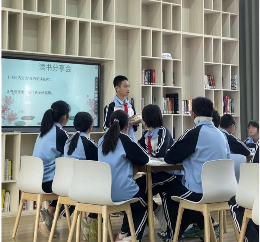 揭牌仪式后,莲华中学七(3)班的同学们在老师的带领下,举办了一节生动的阅读分享展示课,通过分享阅读心得,展现了阅读在孩子们思想启迪与表达能力提升方面所起到的积极作用。