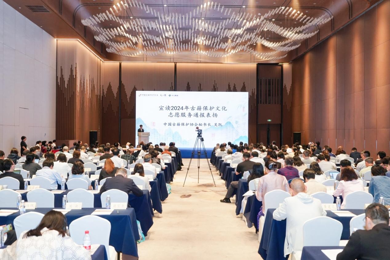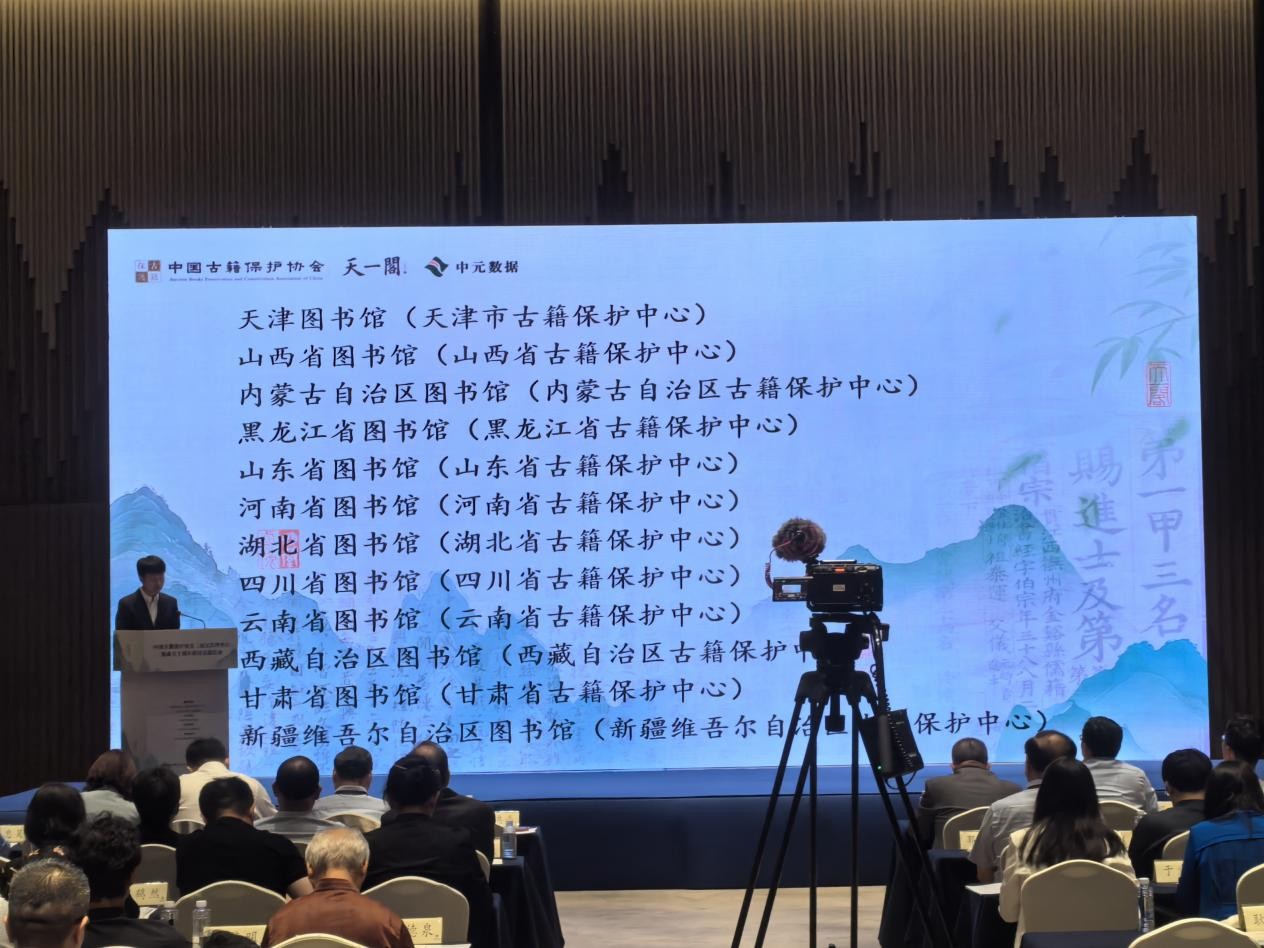 2025年5月8日至9日,中国古籍保护协会二届五次理事会暨成立十周年研讨交流会在浙江宁波举办。协会相关负责人、常务理事、理事、分支机构代表和来自古籍领域专家学者、藏书家、企业人士近200人参加了会议。会议由国家图书馆(国家古籍保护中心)、宁波市文化广电旅游局指导,中国古籍保护协会主办,宁波市天一阁博物院承办,杭州中元数据科技有限公司协办。云南省图书馆党委书记、馆长杨和祥,云南省古籍保护中心副主任计思诚参会。会议通报表扬了2024年组织实施中华古籍保护文化志愿服务的十二个单位,其中云南省图书馆(云南省古籍保护中心)榜上有名。