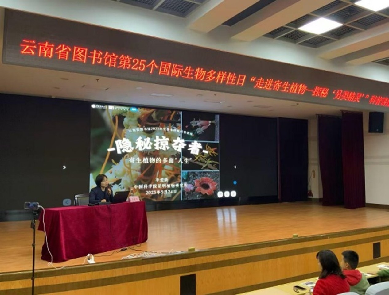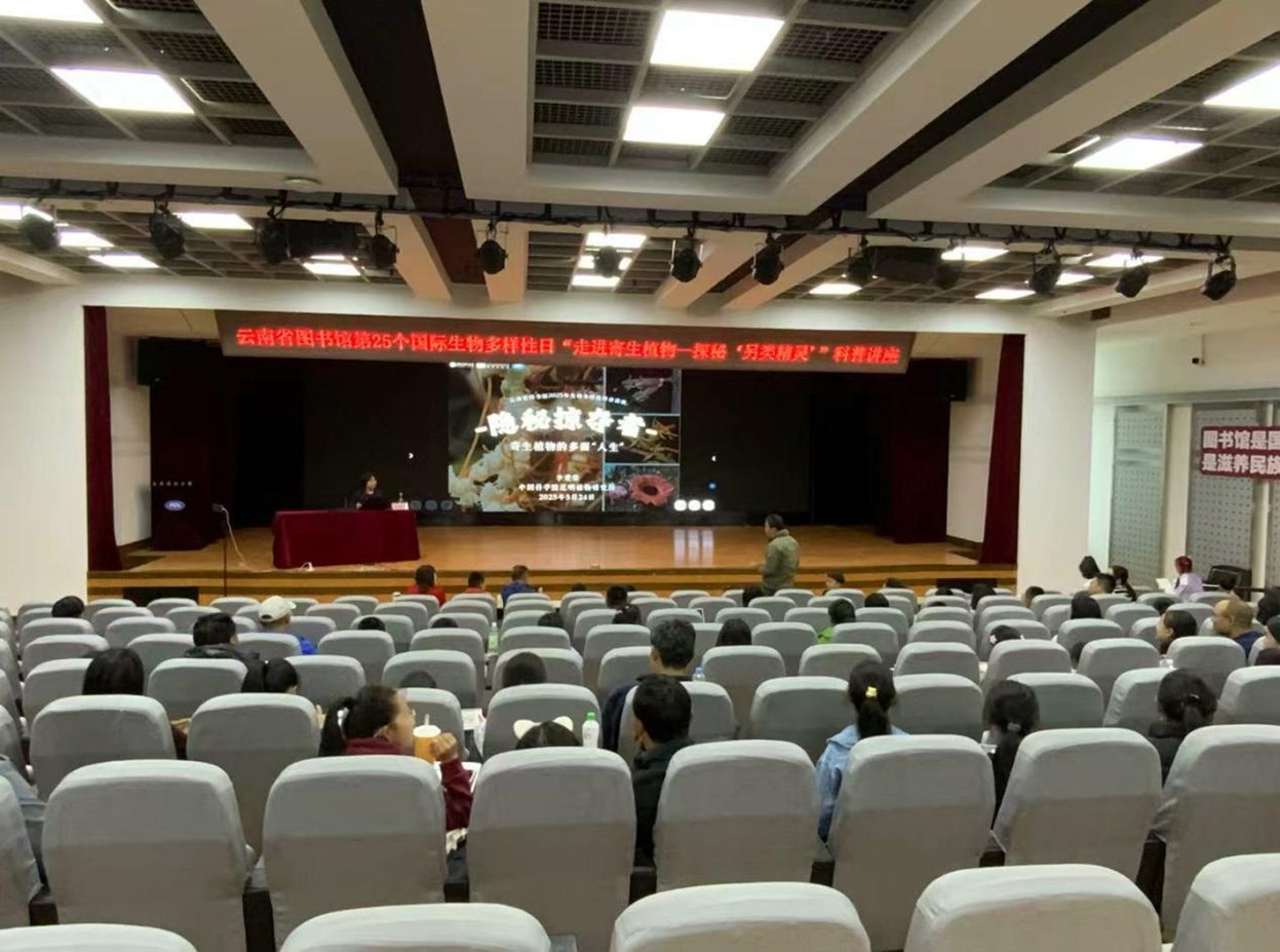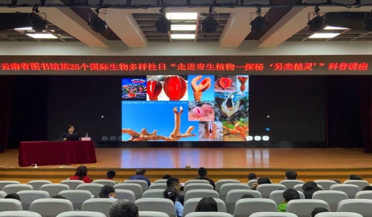 2025年5月24日,云南省图书馆在一楼报告厅成功举办“隐秘掠夺者——寄生植物的多面人生”主题科普讲座。本次活动作为第25个国际生物多样性日系列活动之一,采用线上线下相结合的形式,共吸引千余人次参加,其中现场观众超百人。