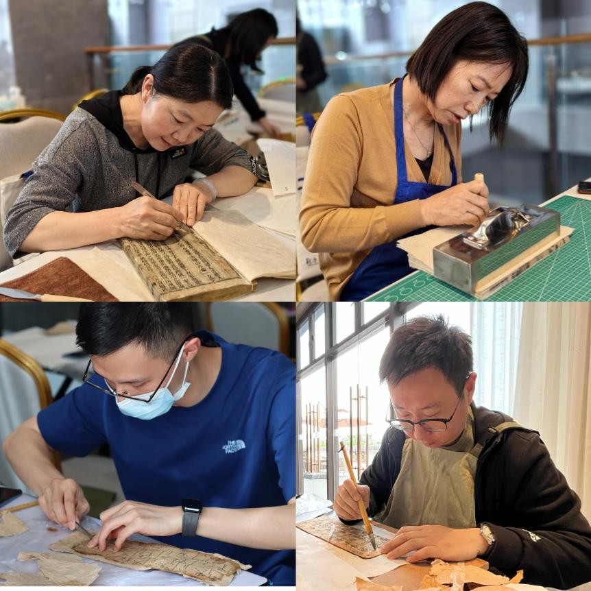 本次培训采用理论与实践结合的方式进行,萨仁高娃讲授了《“中华古籍保护计划”与民族文字古籍保护工作》;林明讲授了《古籍修复伦理与原则》;丽江市博物院纳西族东巴文化传承人和丽宝讲授了《纳西族东巴古籍文献》。实践环节,由云南传习所导师杨利群和云南省图书馆修复团队共同指导完成。