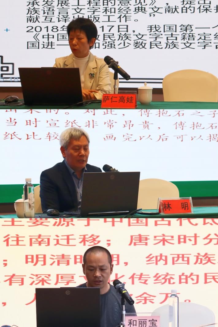 萨仁高娃结合多年实践经验与前沿研究成果,提出了民族文字古籍保护工作的重点、难点及未来发展方向。杨和祥介绍了云南省在民族文字古籍保护方面构建的“技术攻关、项目带动、多维保护、活态传承”四位一体创新体系,充分肯定了大理州在民族古籍保护工作中所做的努力,希望参训学员不断提升专业素养和实践能力,在古籍保护事业中做出更大的贡献。杨学泉介绍了大理州古籍保护工作开展情况。李兆敏从鹤庆的历史文化底蕴、民族特色风情、文旅产业优势等角度作了县情推介。