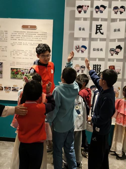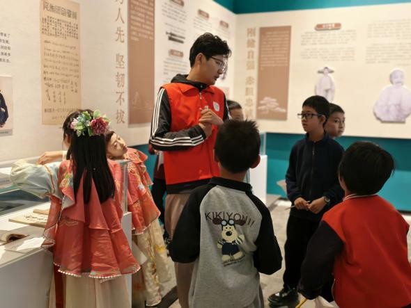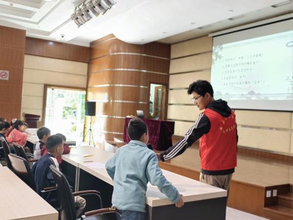 活动现场,历史文献部的高鹏宇老师化身领航员,带领小朋友们穿梭在云南省图书馆的浩瀚书香宝藏中,从文字起源到古籍文献,为小朋友们带来了一场精彩的“云图寻宝”大遨游。除了熟记课堂内容以外,小朋友们还跟随着高老师的脚步到云南典籍博物馆进行现场学习,观看了“缥缃万卷 云岭流芳——典籍里的云南”主题文献展,领略了历代典籍中关于云南的种种记载。一件件实物、一幅幅书卷,文字介绍与实物展示交相呼应,让小朋友们感受到了典籍里的文字“活”起来的力量。