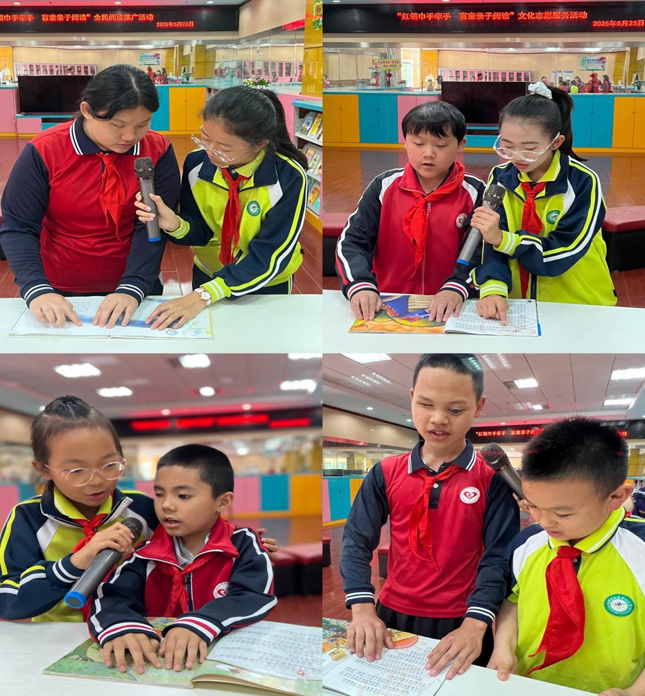 温馨的“共读时光”环节,一对对小伙伴阅读同一本明盲对照的读物,挑选出共同喜欢的章节,用稚嫩的声音、饱满的情绪异口同声地朗读出来,赢得了阵阵掌声。
