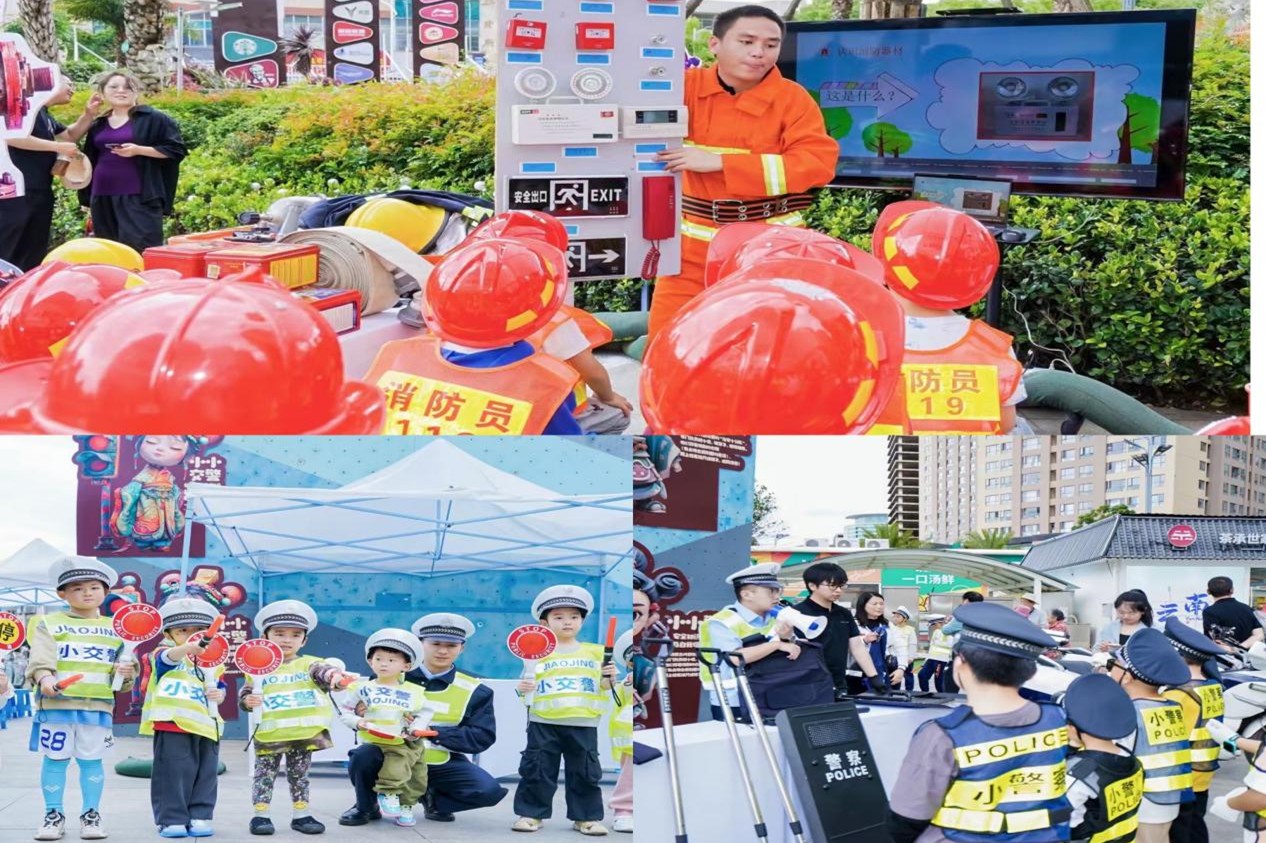 活动结束时,恰逢商场邀请盘龙区公安分局、盘龙区交警大队、盘龙区消防大队开展消防安全知识宣传活动,刚参加完亲子诵读活动的孩子们在警察叔叔和消防员叔叔的指导下当了一回“人民警察”和“消防队员”。至此,为期两天,约八百人参加的四场端午节专场活动在孩子们欢快的笑声中圆满结束。