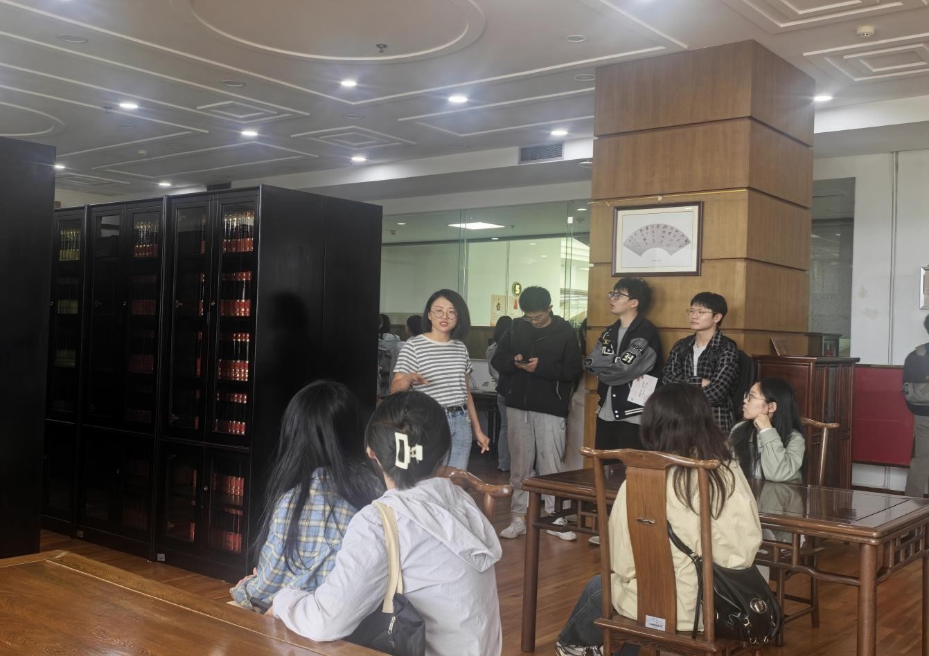 在历史文献阅览室,省图书馆历史文献部杨扬老师就我省古籍保护工作成果、古籍数字化工作的流程与价值意义等内容与同学们进行了交流。