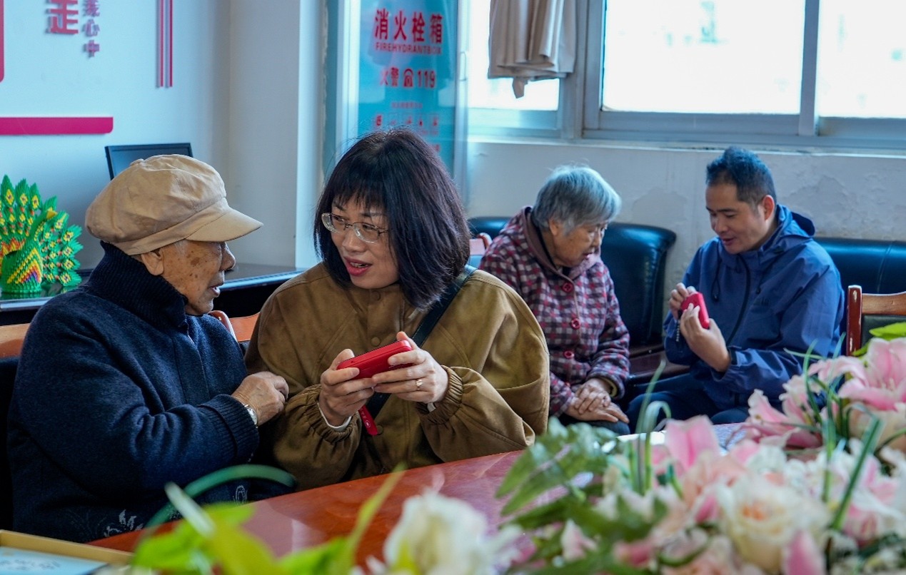 活动现场还设置了“定格最美夕阳红”拍照环节,志愿者们用相机为老人们记录笑脸,有的老人手持刚收到的图书合影,有的与同伴并肩定格温馨瞬间,快门声中满是欢声笑语。志愿者还承诺将冲印好的照片尽快送回敬老院,让老人们留住这份美好回忆。