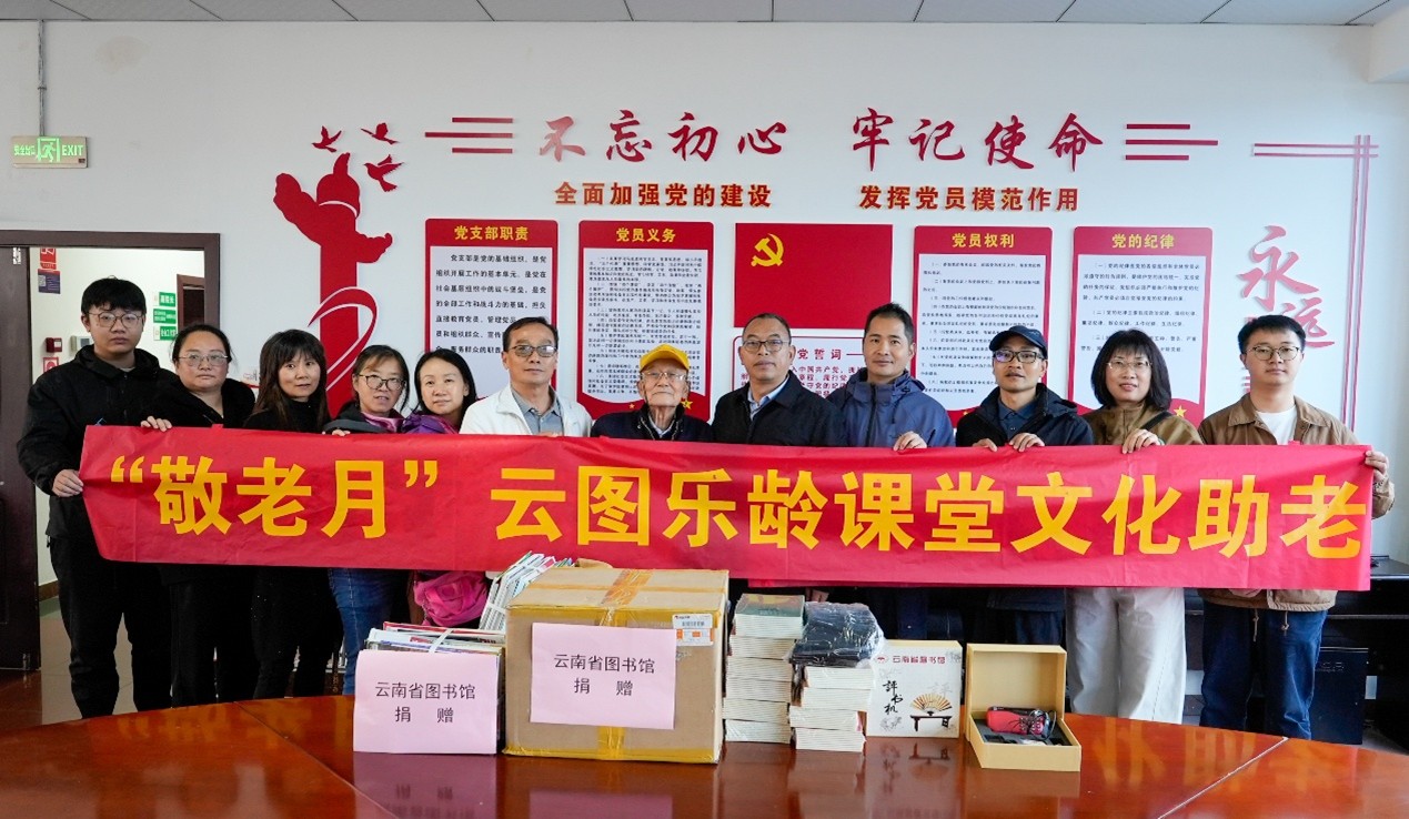 为丰富老年人精神文化生活,弘扬中华民族孝亲敬老传统美德,形成尊老敬老爱老的社会风尚,助力老年群体感受阅读魅力,2025年10月23日上午,云南省图书馆第一党支部、第四党支部及青年理论学习小组联合组成的志愿者服务队伍,走进云南老年之家敬老院开展“云图乐龄课堂”文化助老志愿服务活动,用实际行动送去书香与温暖。