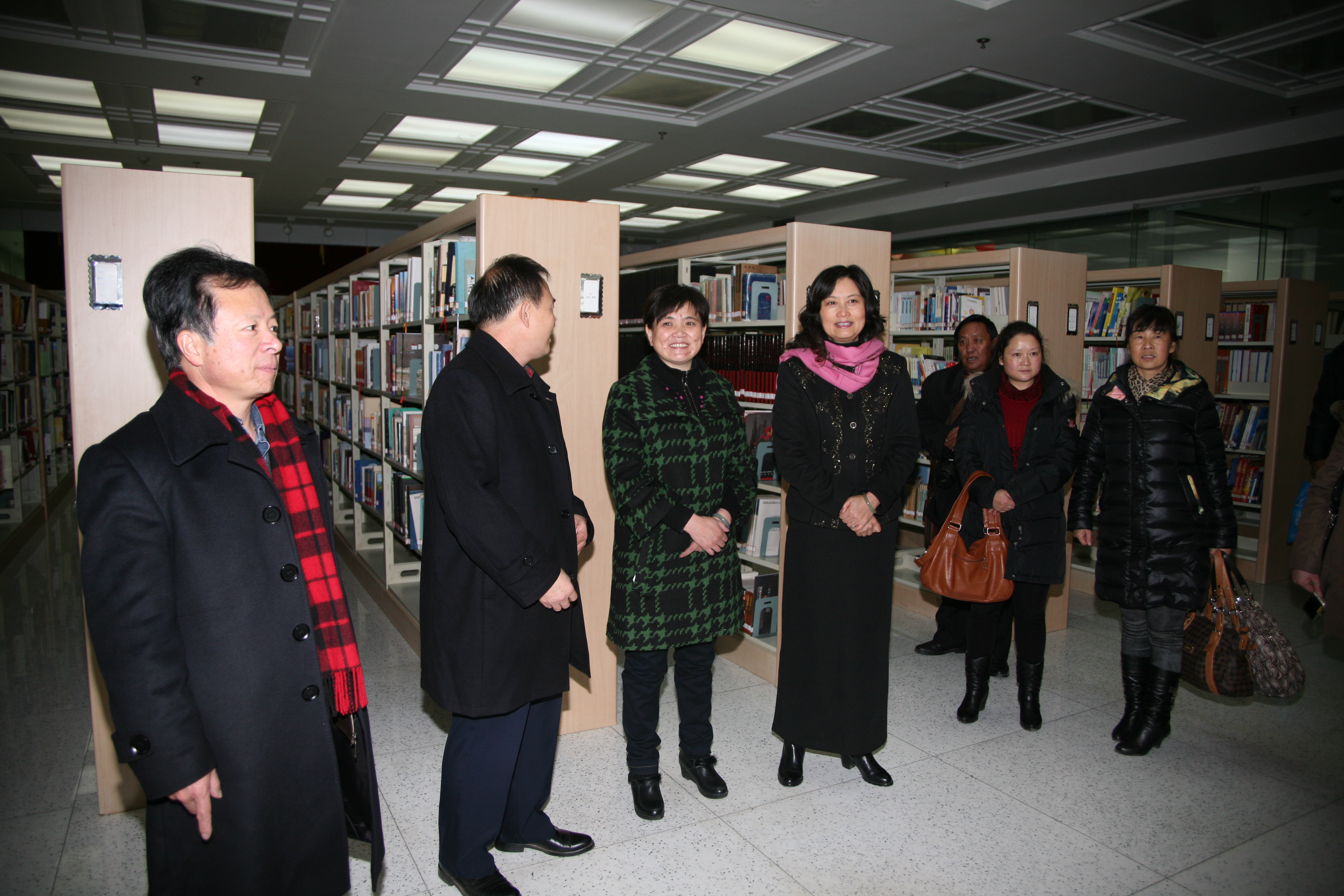 图为黄玲副厅长(左四)陪同任淑芬副厅长(左三)等考察团成员参观我馆