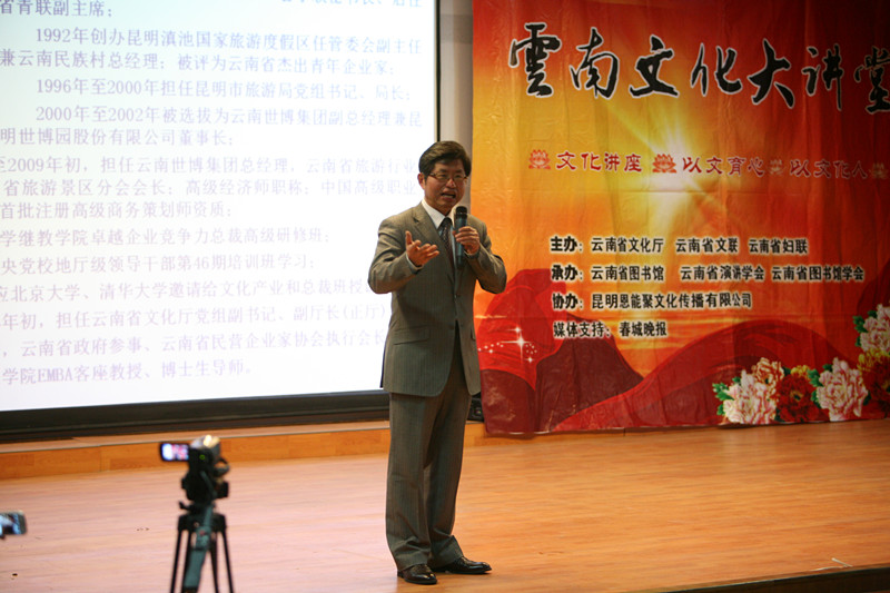 2月9日下午,由云南省文化厅、云南省文联、云南省妇联主办,云南省演讲学会、云南省图书馆、云南省图书馆学会承办的2014年度云南文化大讲堂开讲仪式暨首期公益讲座在我馆举行。