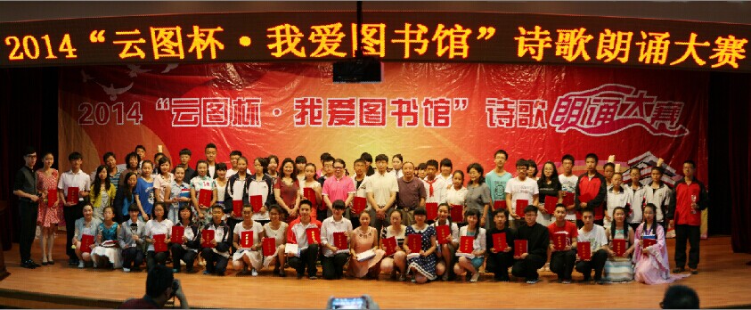 同一天,由云南省文化厅主办、我馆与云南省演讲学会共同承办的“我爱图书馆”云图杯诗歌朗诵大赛在我馆顺利举行,来自昆明市8所中学的学生代表参加了比赛,他们充满激情的演讲深深打动了在场的300余名听众,博得了阵阵掌声。