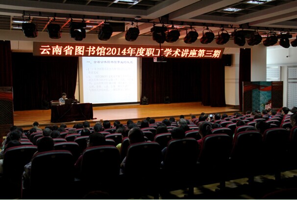 9月12日,我馆2014年度第三期职工学术讲座开讲,由我馆馆长王水乔向全馆干部职工作了题为《云南省公共图书馆事业发展概论》的专题讲座。