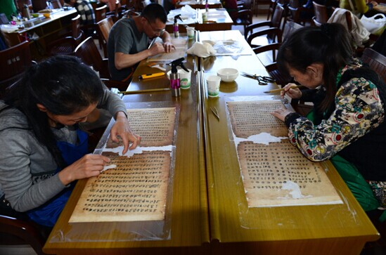 本次培训班以实际操作为主,由云南省图书馆古籍修复专家杨利群及其他两位老师授课,并对楚雄州图书馆和楚雄彝族文化研究院提供的破损严重的彝文古籍进行抢救性修复。学员们在为期5天的培训中,将系统学习标记书叶,调制浆糊,揭、托、裱、补书叶,裁剪、装订书叶等古籍修复技艺,并在老师的示范指导下完成古籍修复工作。特别值得一提的是,此次共有13个县级图书馆馆长参加培训,有助于进一步提升我省基层图书馆古籍修复工作的地位和力量,巩固壮大古籍修复队伍。