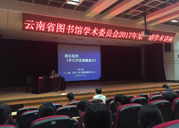 4月21日,云南省图书馆学术委员会2017年第一期学术讲座顺利举行,由上海复旦大学古籍保护研究中心吴格教授主讲,题为“顾廷龙与《章氏四当斋藏书目》”。云南省图书馆全体干部职工和部分读者参加听讲。