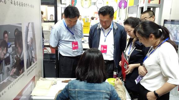 图为云南省文化厅李涛厅长、杨德聪副厅长到云南省图书馆展区指导工作