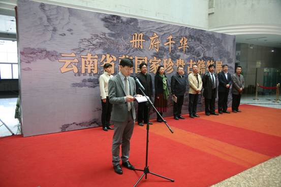 国家图书馆副馆长、国家古籍保护中心副主任张志清,云南省文化厅党组成员、副厅长崔文,国家古籍保护中心相关领导出席开幕式。来自云南省各地州、高校、科研院所和参展单位的负责人,以及社会各界代表参加开幕式。云南省图书馆馆长、省古籍保护中心主任王水乔主持开幕式。
