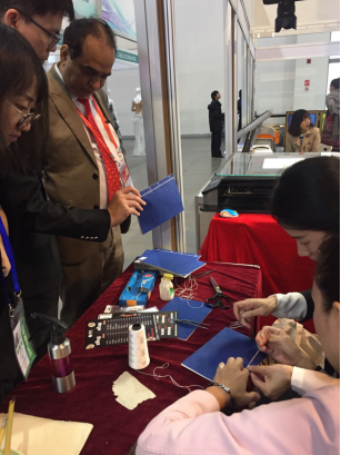 展览期间,云南省图书馆通过多种形式向国内外嘉宾集中展示了在传统文化保护和传承中的文化当担。南博会开幕第一天,云南省图书馆展位就吸引了来自不同国家和地区、不同行业的近百人参观。其中,古籍修复技艺体验活动最受人关注,国家级古籍修复导师杨利群率领徒弟与参观体验者进行古籍修复技艺传授互动,手把手指导体验者完成破损古籍书叶的修复,让古籍保护中最具代表性、也最具展示性和互动性的修复技艺走近社会公众;同时,以“贝叶文化”为重点,通过展示贝叶经制作技艺流程、章哈表演唱《贝叶经》、公众现场体验贝叶经刻写等形式,让公众了解历史悠久的傣族贝叶文化的传承与保护;举办古籍数字化加工体验活动,教授、引导参观者实际体验并学会利用本馆古籍数字资源。通过以上这些活态化的展示,让公众从古籍的刻写、装订、修复、数字化等方面,多视角、全方位了解古籍保护工作,进而参与到古籍保护的行列。