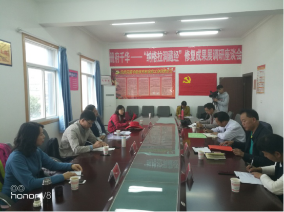 调研中,调研组一行先后实地考察了迪庆州博物馆、迪庆州图书馆备选展出场馆,并召开了调研座谈会。会上,迪庆州图书馆馆长洪耀辉向调研组汇报了古籍特展筹备工作情况。迪庆州图书馆原副馆长和军介绍了“纳格拉洞藏经”的发现、发掘及修复情况。林世田主任、王水乔馆长先后就如何充分发挥“纳格拉洞藏经”的历史及学术价值,全力办好“纳格拉洞藏经修复成果展”提出了要求,进行了部署。(历史文献部 计思诚)