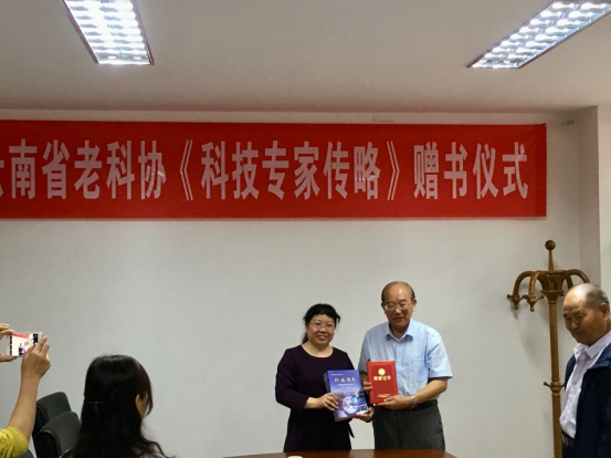 赠书仪式上,省老科协常务副会长赵世坤重点介绍了省科技厅、省科协的科普专项计划——云南省杰出科技专家先进事迹宣传编撰项目系列图书《云南省杰出科技专家传略》的编撰、出版情况。《云南省杰出科技专家传略》分为《科技先驱》《科技楷模》《科技精英》三部分,以传记形式入编云南省近现代146名杰出科技专家的学术成长先进事迹,由云南省科技出版社出版发行。