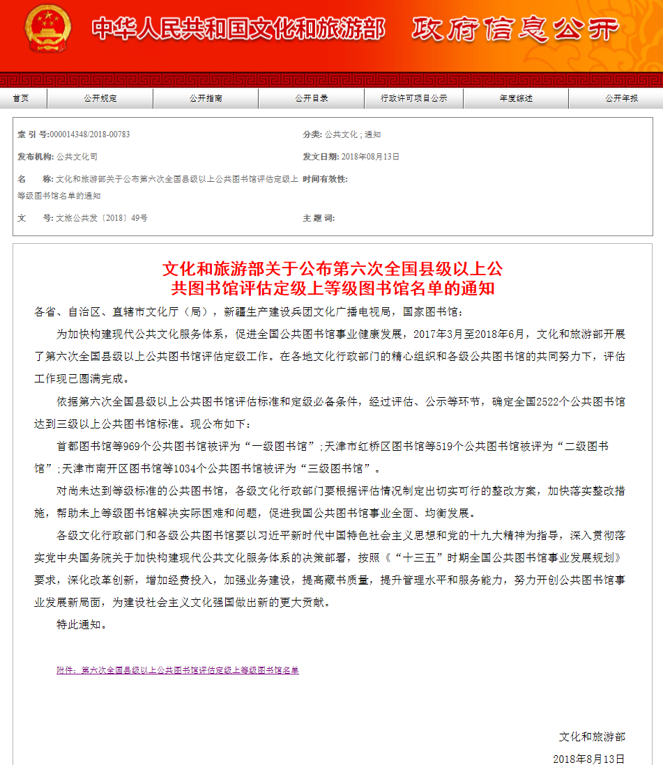 云南省图书馆被文化和旅游部评为一级图书馆