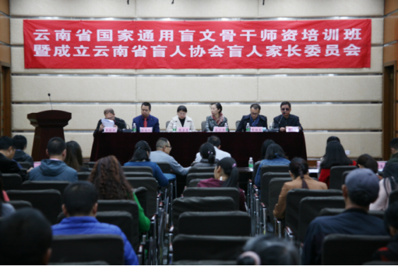 10月30日至31日,由云南省图书馆、省盲协联合主办的云南省国家通用盲文骨干师资培训班暨成立云南省盲人协会盲人家长委员会顺利举行。省残联副理事长宋少华、省图书馆副馆长周宇青、省盲协主席汪靖人、省残联组联处副处长李征宇等领导,以及特校教师、特邀专家、各州市盲协主席、盲童代表及家长等100余人参加活动。