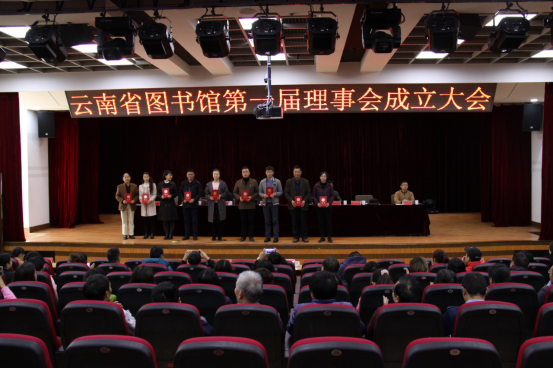 2018年12月24日上午,云南省图书馆第一届理事会成立大会在云南省图书馆举行。云南省文化和旅游厅党组成员、副厅长崔文,云南省委宣传部图书出版管理处副处长孙启海,云南省人力资源和社会保障厅行政管理研究所所长李平生,云南省文化和旅游厅公共文化处副处长和栩灵、厅机关党委纪委臧利然,以及云南省图书馆第一届理事会全体理事人选、部分新闻媒体记者、云南省图书馆全体干部职工参加会议。云南省文化和旅游厅公共文化处副处长朱洪兵主持会议。