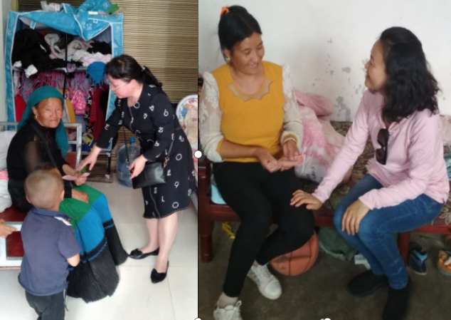 图为周宇青副馆长(左)、鲁颖副馆长(右)走访慰问结队帮扶户