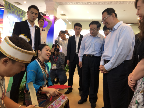 图为文化和旅游部部长雒树刚视察云南省图书馆展位