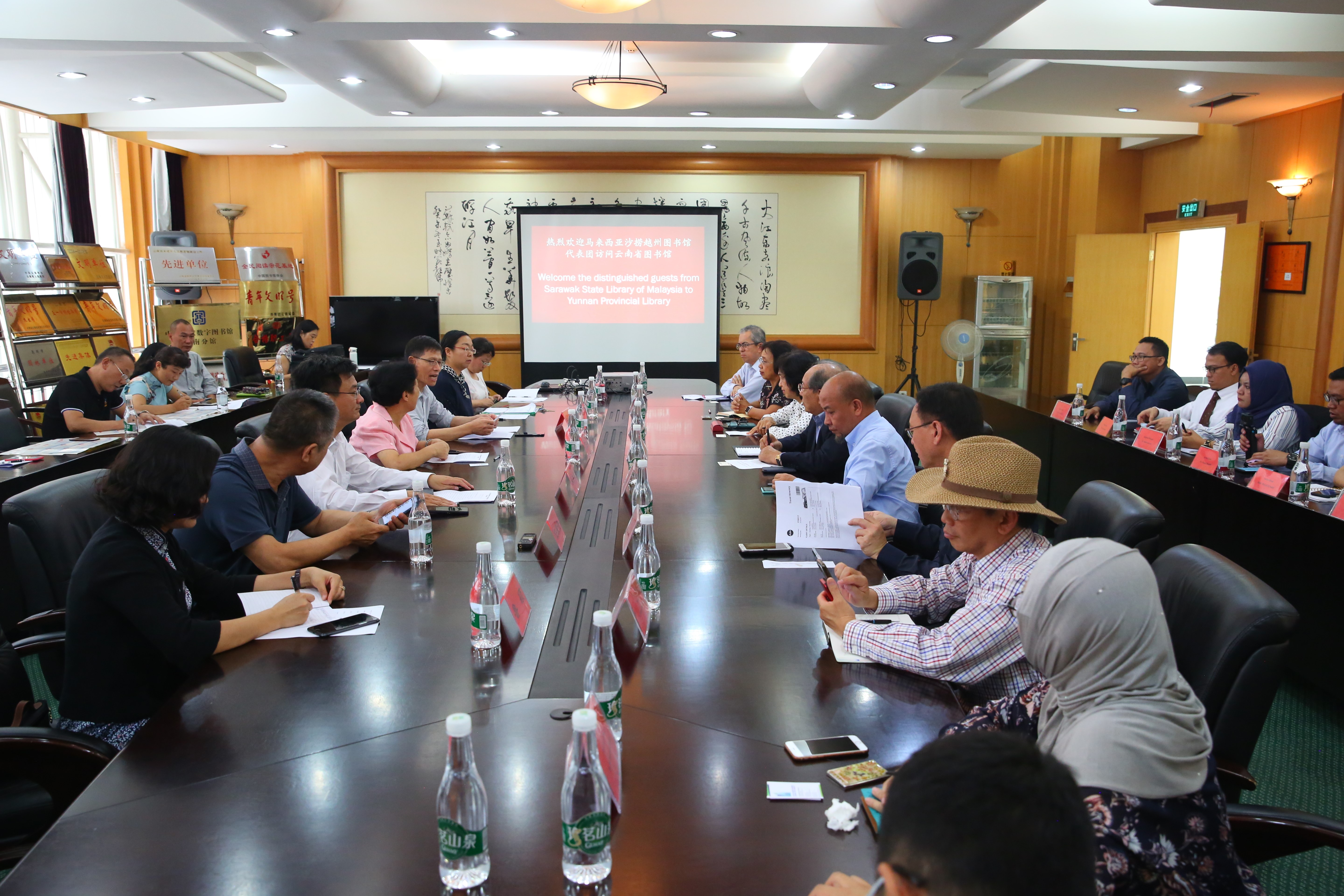 为进一步落实《中国云南省图书馆与马来西亚沙捞越州图书馆合作备忘录》,2019年8月15日,马来西亚沙捞越州图书馆一行18人到云南省图书馆进行参观访问。