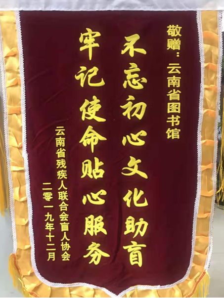 云南省盲协向云南省图书馆赠送锦旗