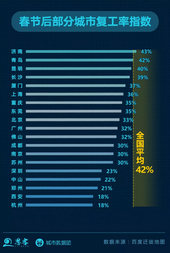 新华网:全国平均复功率为42% 云南复工率达70%