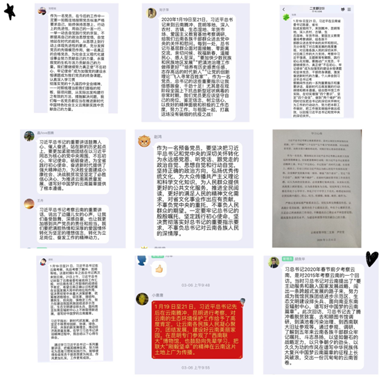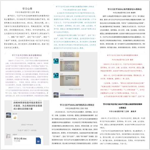 二是于3月6日开展了2020年第二次理论学习中心组集体线上学习活动,组织中心组成员、全馆党员和干部职工通过网络,深入学习习近平总书记2020年考察云南重要讲话精神,并在微信群、QQ群里进行了热烈的学习讨论。通过学习,大家进一步深刻理解了习近平总书记考察云南重要讲话的精神实质和科学内涵,梳理明晰了当前和今后一个时期的工作思路和贯彻落实措施,统一了思想、提高了认识,为充分发挥图书馆职能职责,推动党中央、云南省委决策部署的贯彻落实打下了坚实的思想基础和理论根基。