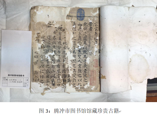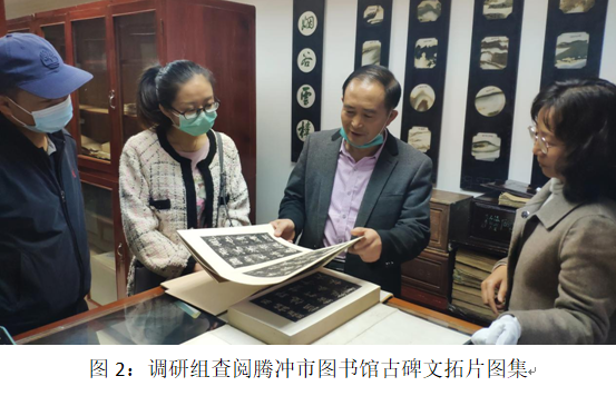 25日上午,调研组来到腾冲市图书馆,认真听取了该馆各项工作情况汇报并进行了座谈研讨。马云川馆长对腾冲市图书馆古籍保护工作提出了指导意见,希望该馆加快珍贵典籍的抢救修复和整理、研究、出版;同时表示,云南省图书馆将进一步加强与腾冲市图书馆的合作,促进古籍普查和整理修复的培训和工作交流,帮助腾冲市图书馆强化“数字阅读”、“国门文化”、“抗战文化”等方面的建设,创新服务模式,力争打造具有特色的服务示范点,总结出能在全省推广的“文旅融合”服务经验,全面提升公共文化服务效能。