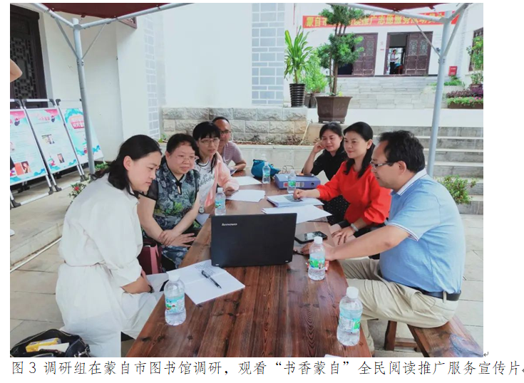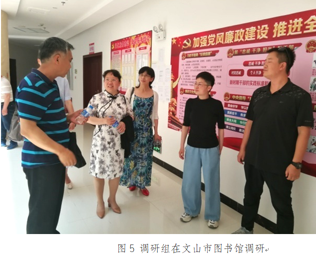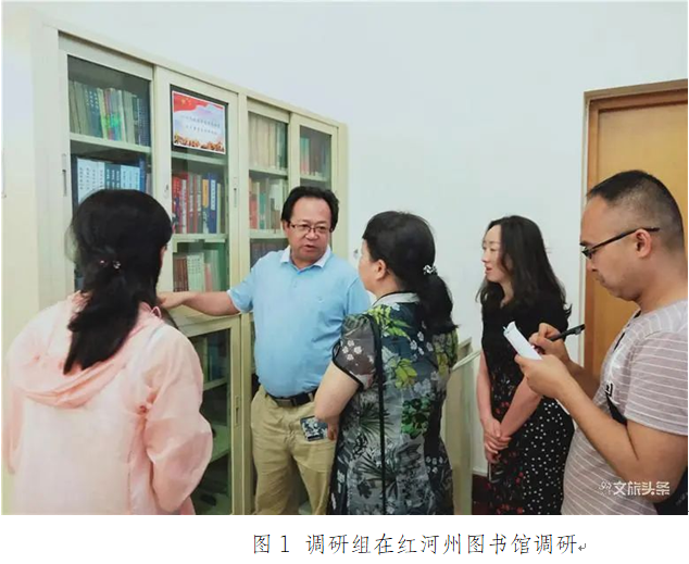 调研组分别在红河州图书馆、蒙自市图书馆、元阳县图书馆和文山州图书馆、文山市图书馆、砚山县图书馆、丘北县图书馆7馆开展实地调研与问卷调查,全面了解了中华人民共和国公共图书馆法》的落实情况、云南省公共图书馆立法建议、当地政府对图书馆工作的支持力度、图书馆总分馆建设以及在大力推广全民阅读活动中各图书馆的工作特色和亮点、存在问题和困难、需求和建议,发放回收了《云南省公共图书馆地方性立法调研问卷》《文旅融合背景下推动全民阅读、践行文化与旅游融合服务调研问卷》。