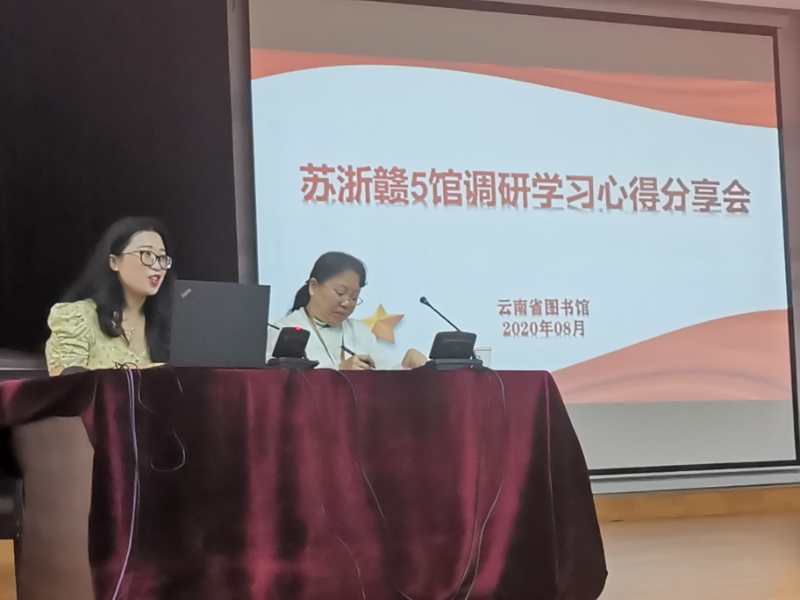8月28日,云南省图书馆召开“苏浙赣五馆调研学习心得分享会”,由近期到沿海先进图书馆进行实地学习考察的相关人员向全馆职工分享学习体会。馆领导、全馆干部职工参加会议。周宇青、鲁颖副馆长主持会议。
