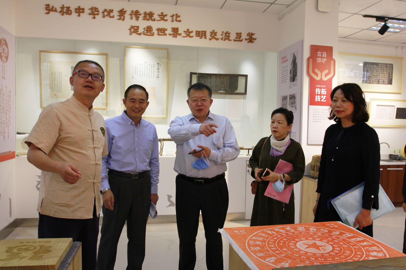 图为张志清副馆长参观云南省图书馆古籍修复保护传拓研习馆