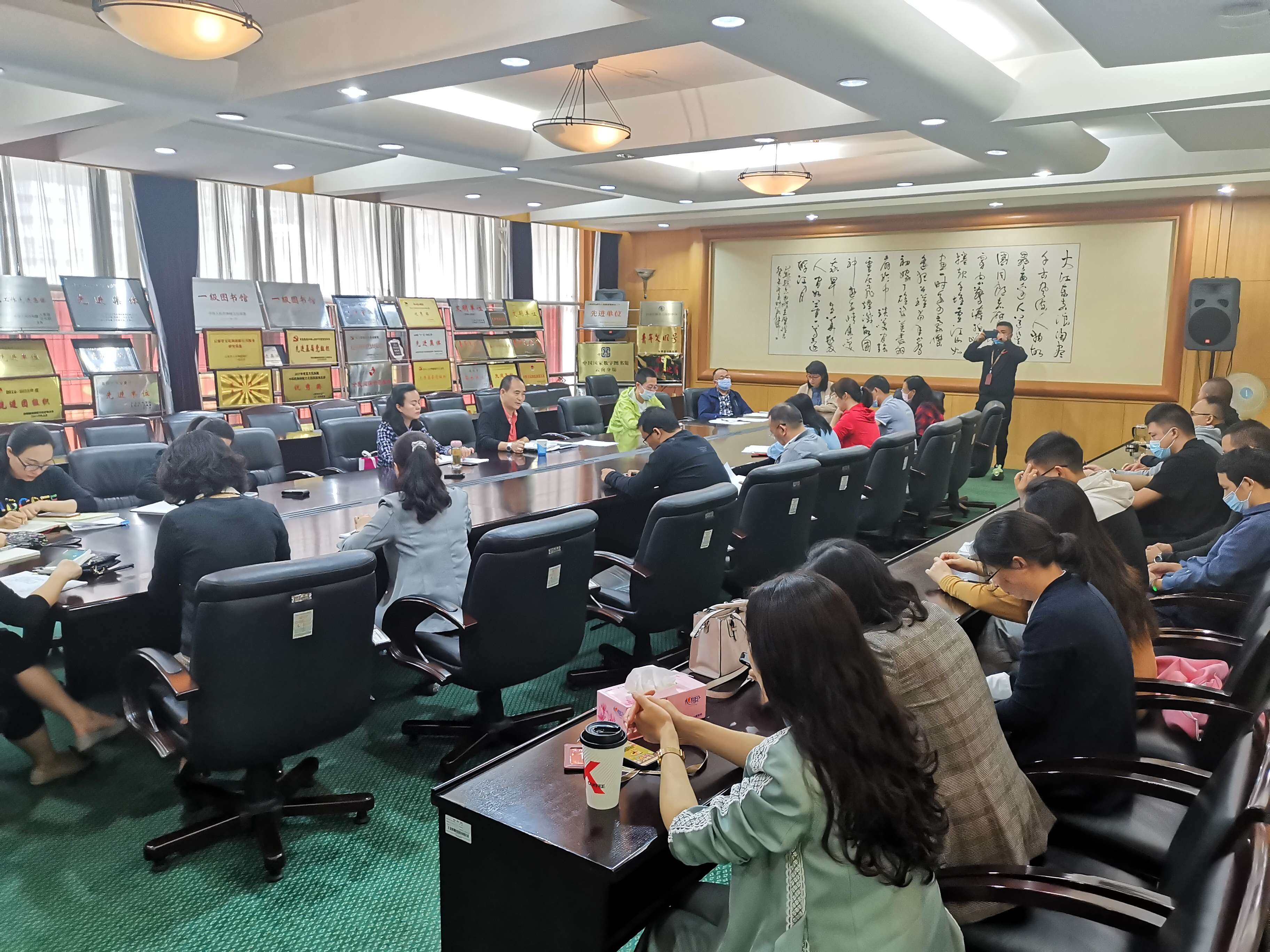 图为馆爱卫领导小组召开扩大会议进行工作部署
