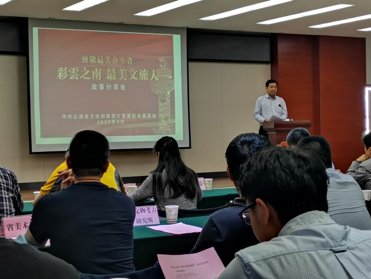 根据《省直机关“决胜小康 奋斗有我”群众性主题宣传教育活动实施方案》要求,结合《云南省文化和旅游厅关于开展“我和我的祖国”迎国庆主题系列活动方案》安排部署,为热烈庆祝新中国成立71周年,9月29日下午云南省文化和旅游厅举行了“彩云之南—最美文旅人故事”分享会,厅机关全体工作人员、厅直属单位党政主要领导以及来自云南省导游协会、昆明市导游协会的人员和故事汇分享人等100余人参会。